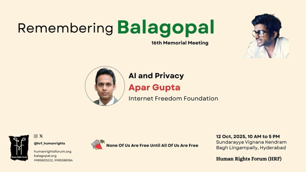 AI and Privacy – Apar Gupta (Remembering Balagopal, 16th Memorial Meeting; 12 October 2025)