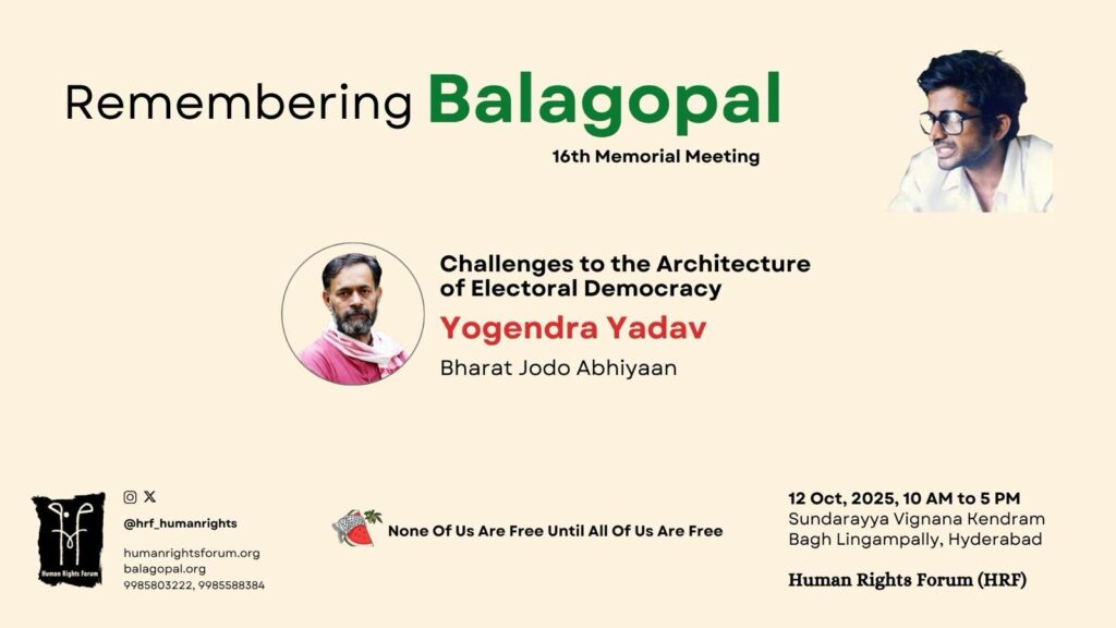 Challenges to the Architecture of Electoral Democracy – Yogendra Yadav (Remembering Balagopal, 16th Memorial Meeting; 12 October 2025)
